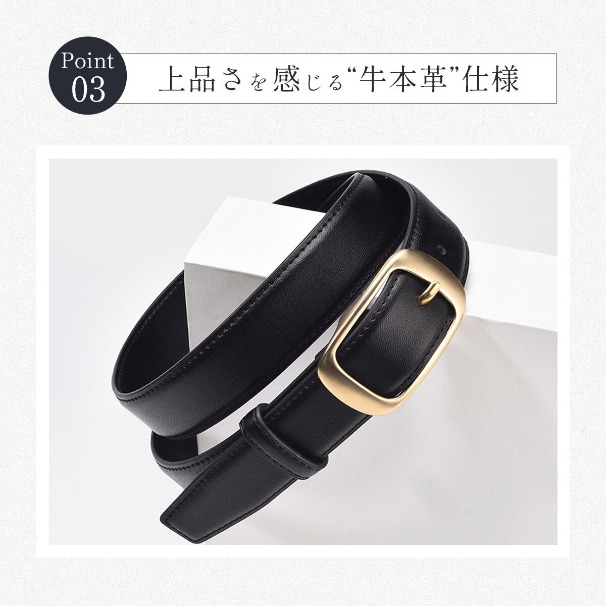 シンプルなデザインの本革レディースベルト。