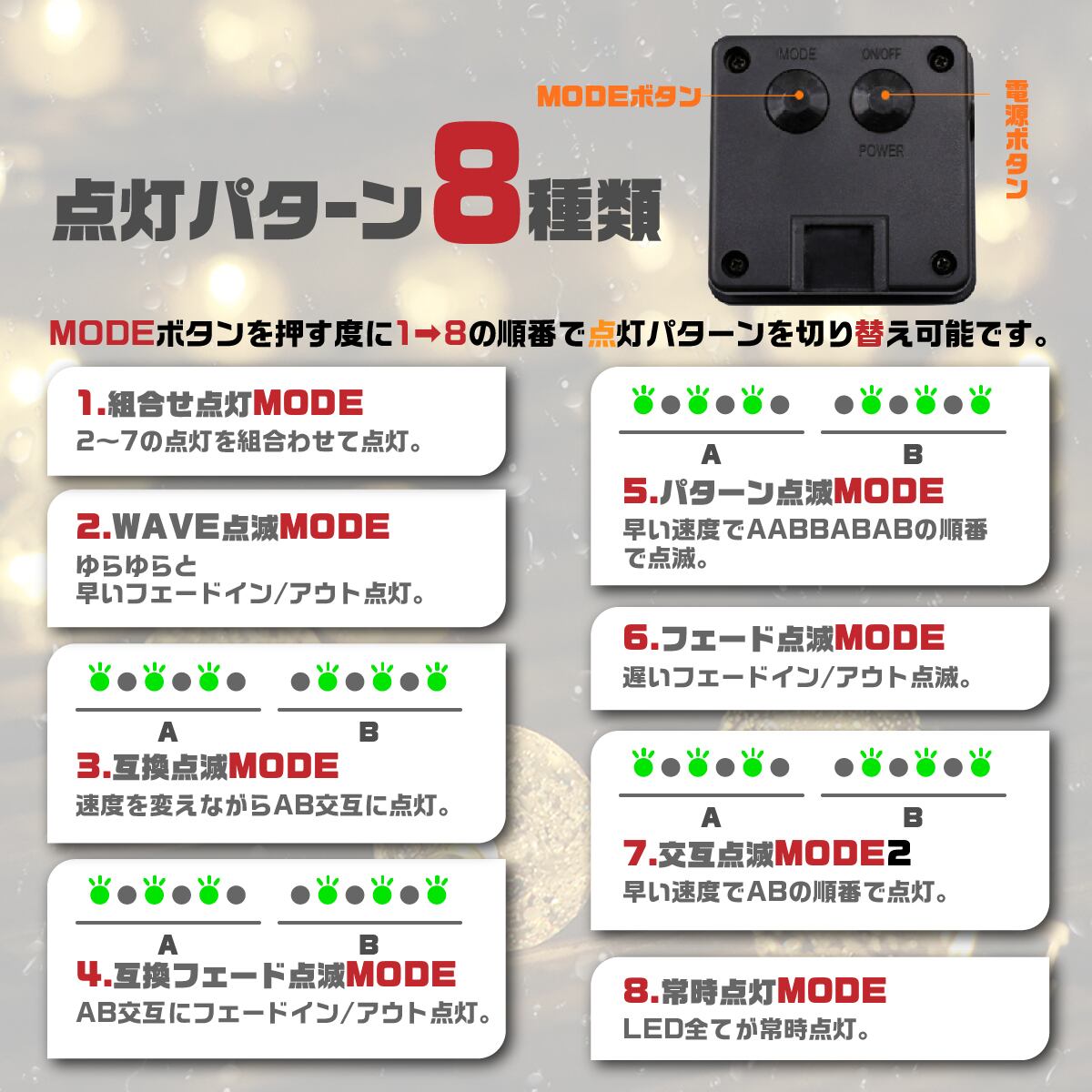 点灯パターンは8パターンあるので様々な楽しみ方が可能です。