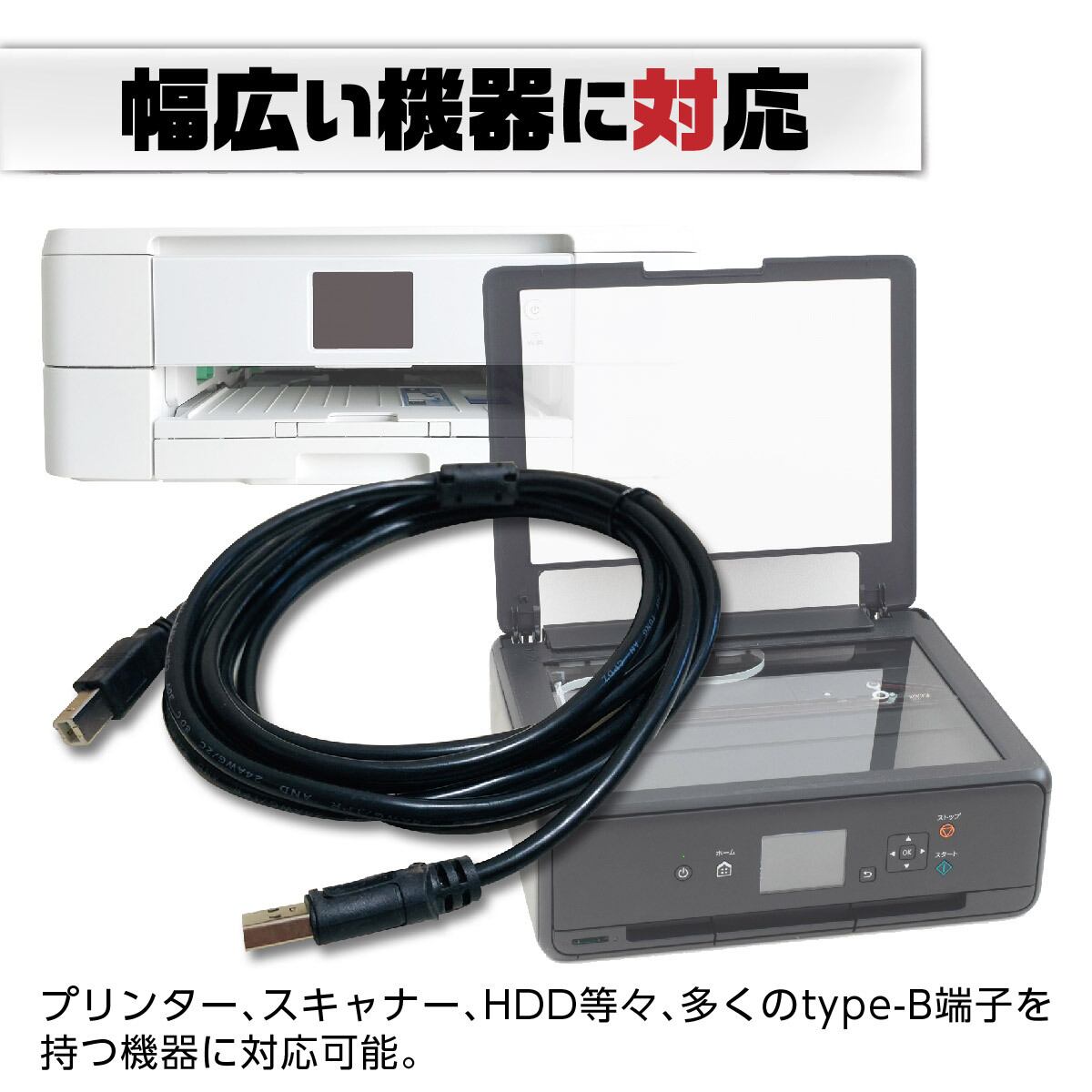 プリンターケーブル USB2.0 5m データ転送速度最大480Mbps パソコン データ転送 周辺機器 複合機 増設 延長 多重シールド 安心安全