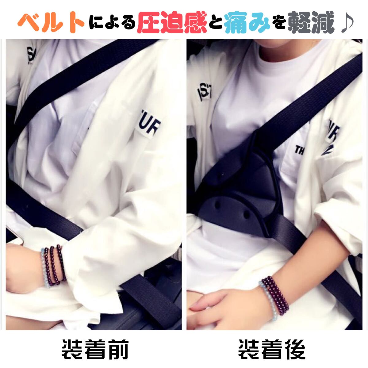 シートベルト装着による圧迫と痛みを軽減させてくれるシートベルトパッド。