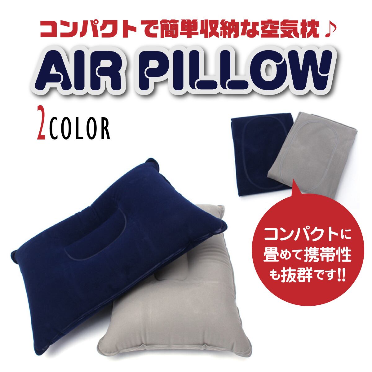 小さく入り畳めて持ち運びにも便利なエアーピロー。