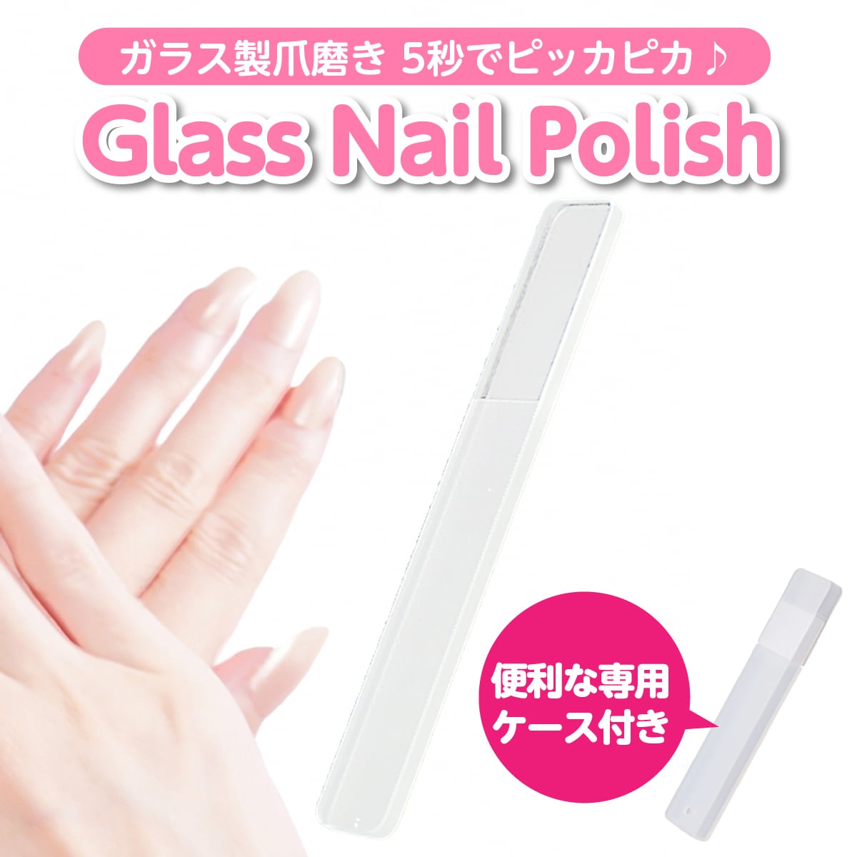 爪やすり 爪磨き ケース付き ガラス製 ヤスリ ネイルファイル ネイルケア ネイルバッファー 高級 ピカピカ ネイル ハンドケア つめ ツメ