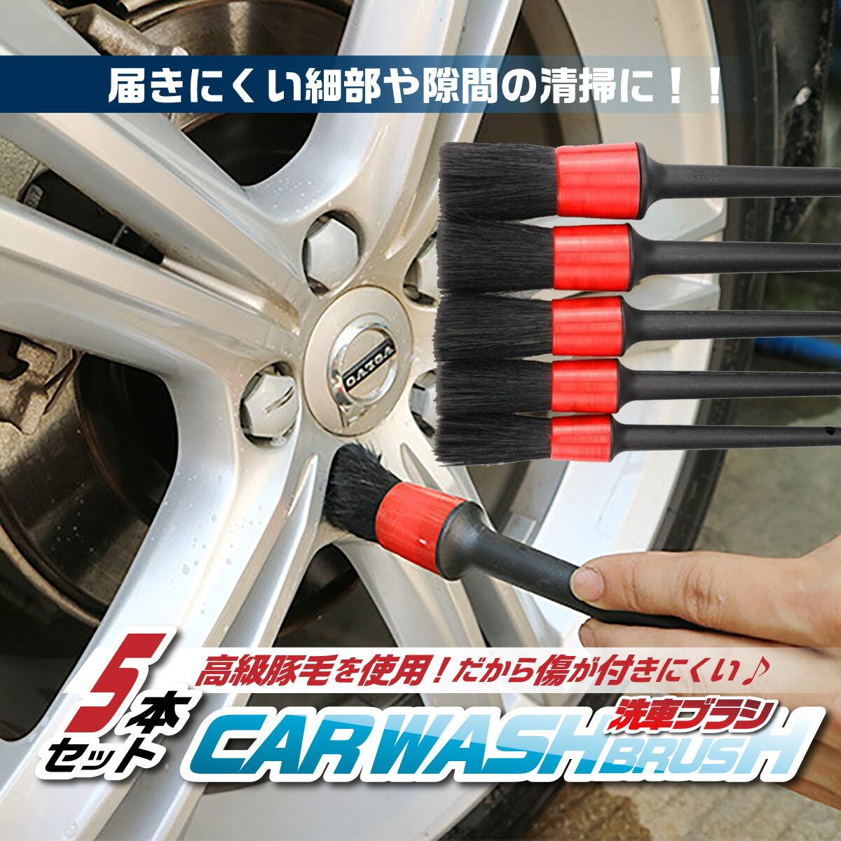 洗車ブラシ 5本セット 傷つかない トラック ホイール ディティールブラシ 洗車グッズ 筆 ロング 高級 豚毛 ボディ用 掃除