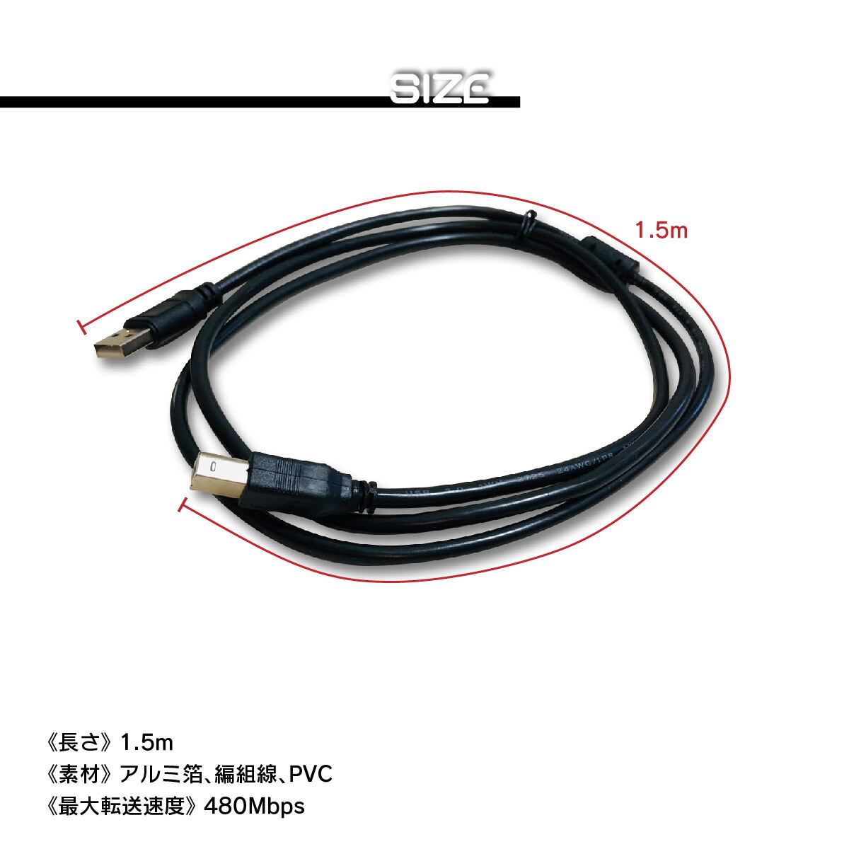 プリンターケーブル USB2.0 1.5m データ転送速度最大480Mbps パソコン データ転送 周辺機器 複合機 増設 延長 多重シールド 安心安全