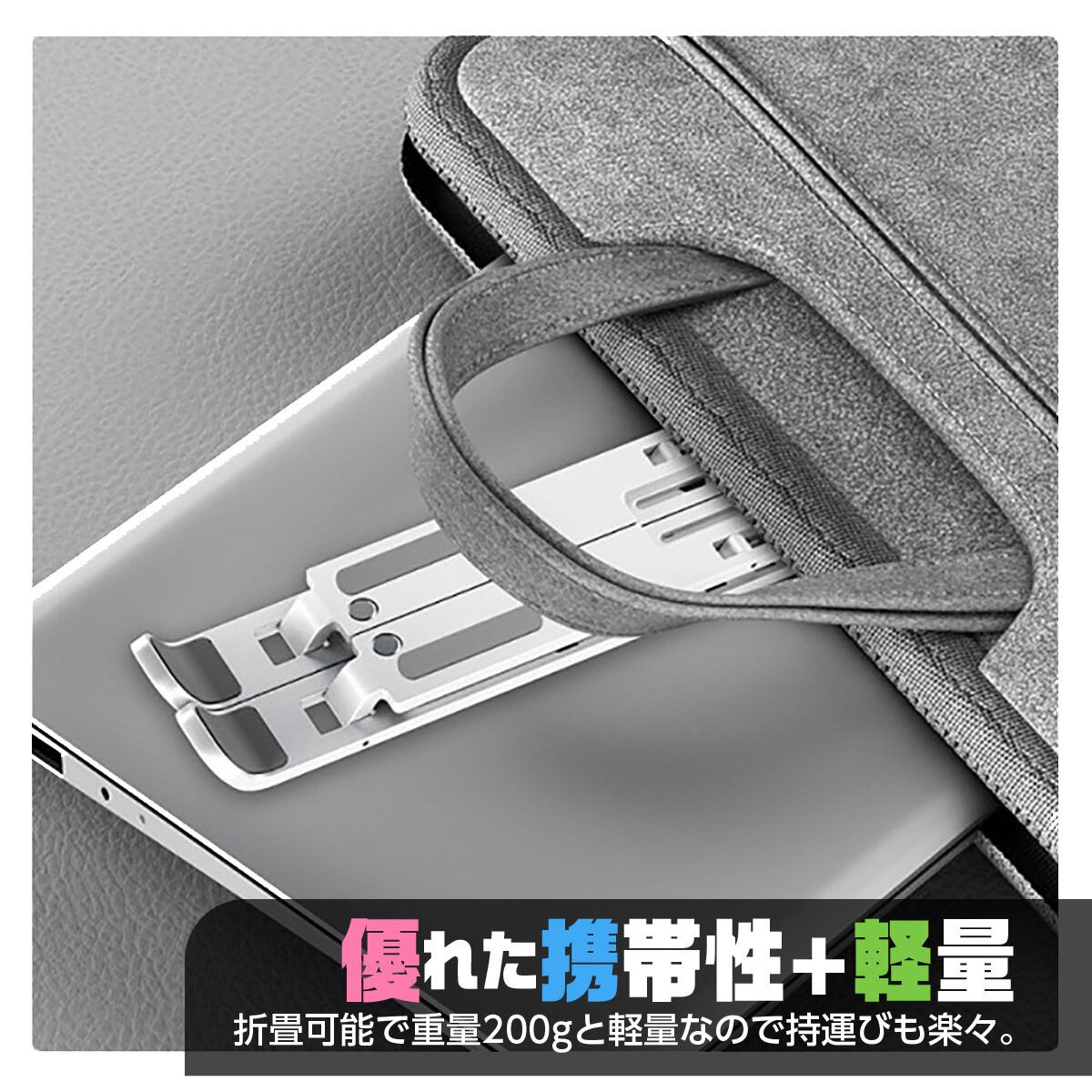コンパクトに折りたためて持ち運びに便利なノートパソコンスタンド。