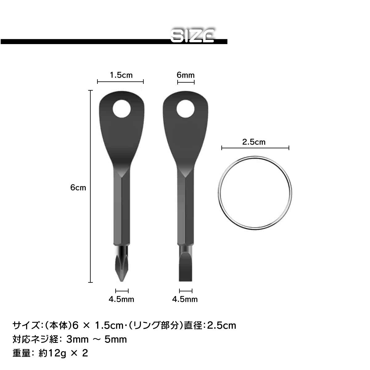 ミニドライバー 2本セット キーリング付き プラスドライバー マイナスドライバー キーホルダー 工具 キーホルダー 携帯用 持ち運び 小型